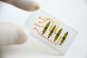 A biochip is a device that has some of the features of a computer chip but, instead of doing calculations, it uses living cells(or molecules from living cells) to greatly speed up certain laboratory tests.A typical biochip is a glass or plastic chip or tile a few inches on a side. It has hundreds or even tens of thousands of microscope droplets of material stuck to its surface like gum on a sidewalk. A computer looks at the chip using a camera. Information from a biochip can be used to learn about differences between genes,cells or drugs. It can also be used to study many other questions about cells. Biochips are also called microarrays, where micro means "small" and an array is any regular grid,such as a chessboard. The droplets on a biochip are laid down in a checkerboard pattern. A square chip five inches (thirteen centimeters) on a side may have 40,000 or more spots on its surface.